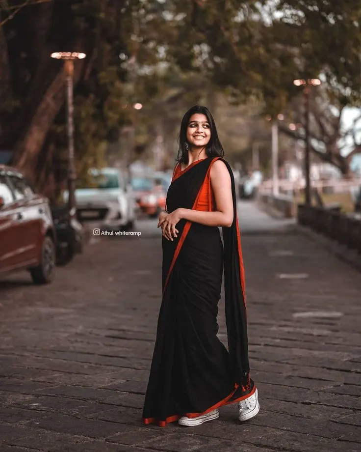 Urban style tip: Own those bustling streets and bold walls like itās your personal runway! Stroll confidently through vibrant markets or strike a pose against a graffiti-covered wall. Natural daylight adds that raw, unfiltered energy. Pair your traditional saree with modern twists ā think sunglasses, sneakers, or even a denim jacket. The contrast between graceful drapes and edgy backdrops makes for striking, magazine-worthy shots that are full of personality.